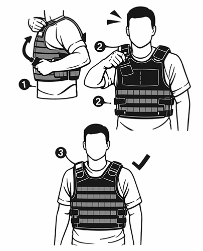 En skyddsväst som sitter fel gör ingen nytta. Sitter den för löst kan den glida och blotta vitala organ. Sitter den för hårt begränsar den rörligheten och andningen, vilket kan bli farligt i en stressad situation. Västen ska täcka de vitala organen (hjärta, lungor, lever) utan att ta i bältet när du sitter ner, eller skava mot halsen.